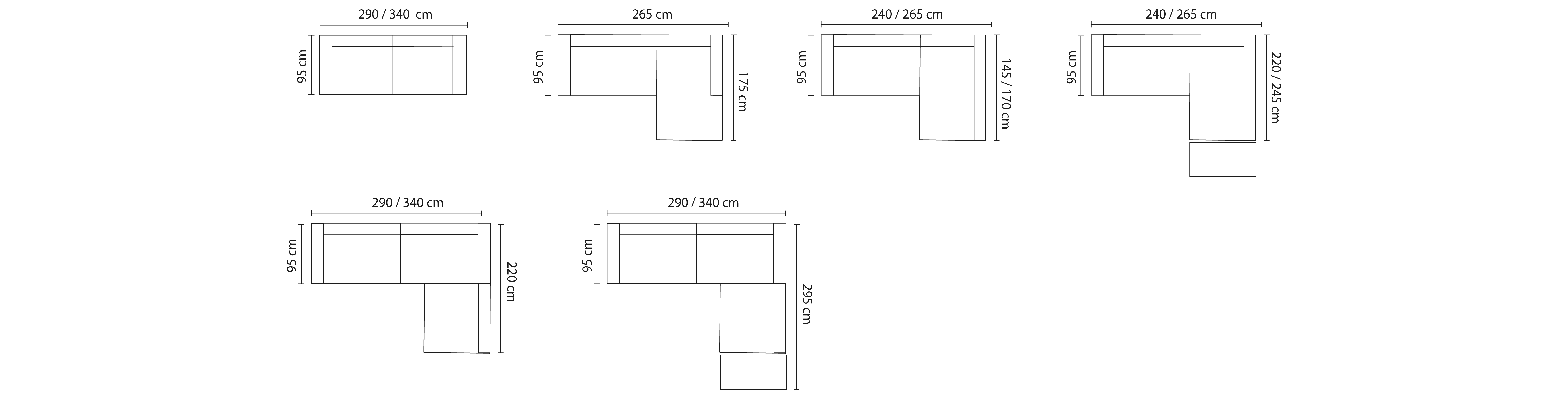 Indicative price for the set with dimensions 265×175 and removable fabric cover.